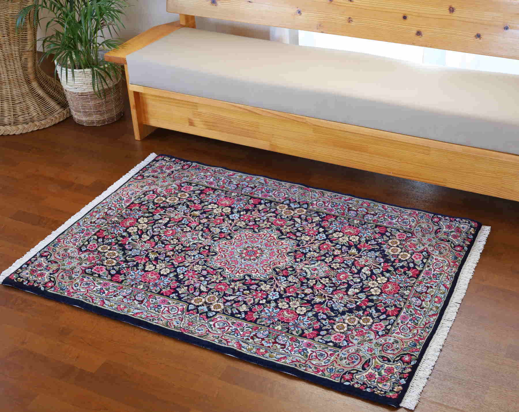 ソファーの足元やくつろげるラグをはじめ、大きな玄関マットにも。情趣豊かな花々とやわらかな踏み心地を日々の生活の中で存分に楽しみたい、美しく実用的なケルマンのペルシャ絨毯です。