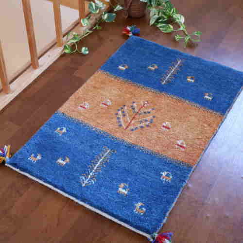 ギャッベ cg17999 「おしゃれな青い角」 122×79cm SOLD