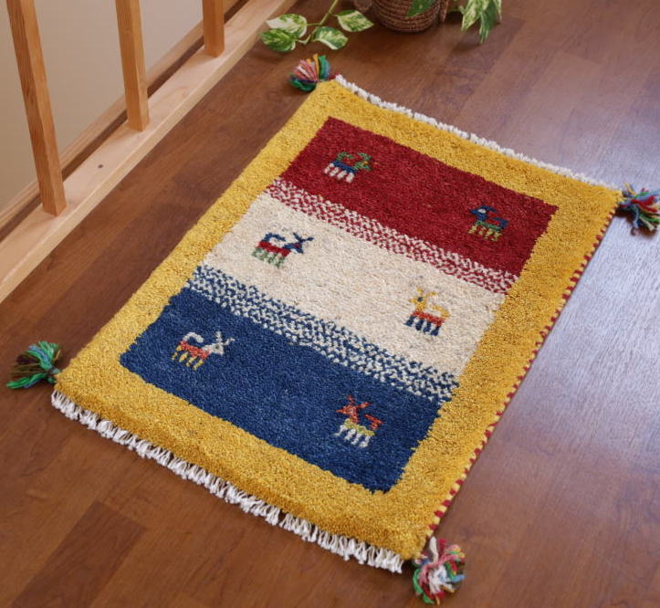 玄関マットや足置きマットにはもちろん、お座布団にもやわらかなギャッベ絨毯です。