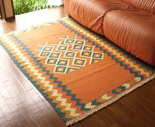 太陽の光が良く似合う、イラン南西部・シーラーズ産のキリムです。ざっくりとした素朴な風合いとカラフルな美しい色合いが特徴で、裏表はありません。丈夫に織られており、気軽にゴシゴシ洗えるので、普段使いの敷物として使いやすいキリムです。