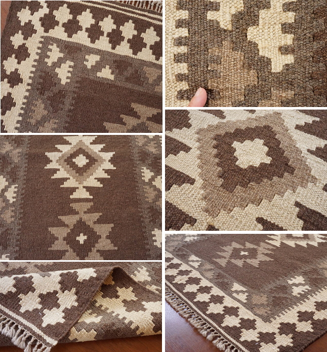 ![]() 赤みを含んだ濃いこげ茶にグレーを帯びたこげ茶、より薄い茶の濃淡3種の褐色にベージュの糸は、セピア色を思わせるモノトーンの色調で、希望の星とリズミカルな枠模様をシャープに描き出しています。 丁寧に織り上げられた織り地は太く細く変化する素朴な糸をきっちりと織り締めながら、スリット部分も小さめに抑えて丈夫な質感に仕上げています。 ソファーやテーブルの足元や、勉強机の下に敷き込んでも。ざらりと無骨な手ごたえを踏み込んで育てていくのが楽しみな、ナチュラルにも凛々しいシーラーズキリムです。 |