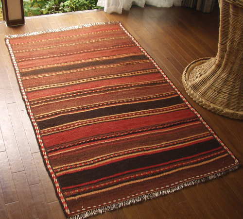 ソファー下の敷物として良く映えますが、全体に柔らかくてろんとした質感なので、家具やソファーの背にかけて飾るのにも向いているキリムです。