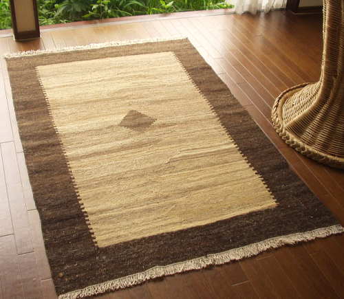 ![]() 濃い毛色に枠取られた真ん中に、魔よけの目のモチーフがひとつ。さまざまな毛色が混ざり合いながら色濃く流れる色むらの妙味を、シンプルなデザインがより際立たせています。全体の輪郭は下の方が少しすぼんでいたりと(1〜2p)かっちりとした長方形ではありません。ソファー前などはもちん、ちょっとしたスペースや家具の下などにさりげなく敷きこめる、素材感を楽しめる一枚です。 |