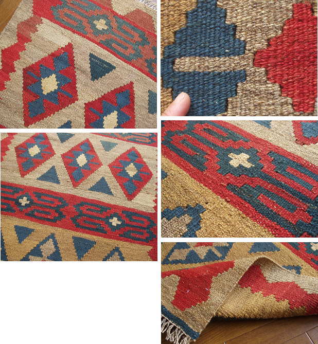 何よりも、少し野性味を感じるほどの素朴さが手仕事のキリムにさらに深みと面白みを増す、昔ながらの味わいを強く感じるキリムです。