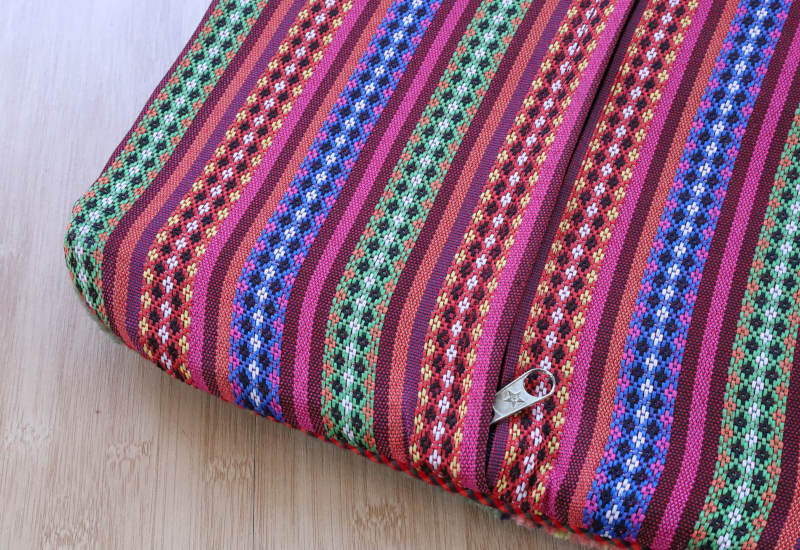ファスナーは背面についています。40−45cm角のヌードクッションか、詰め物を入れてお使い下さい。